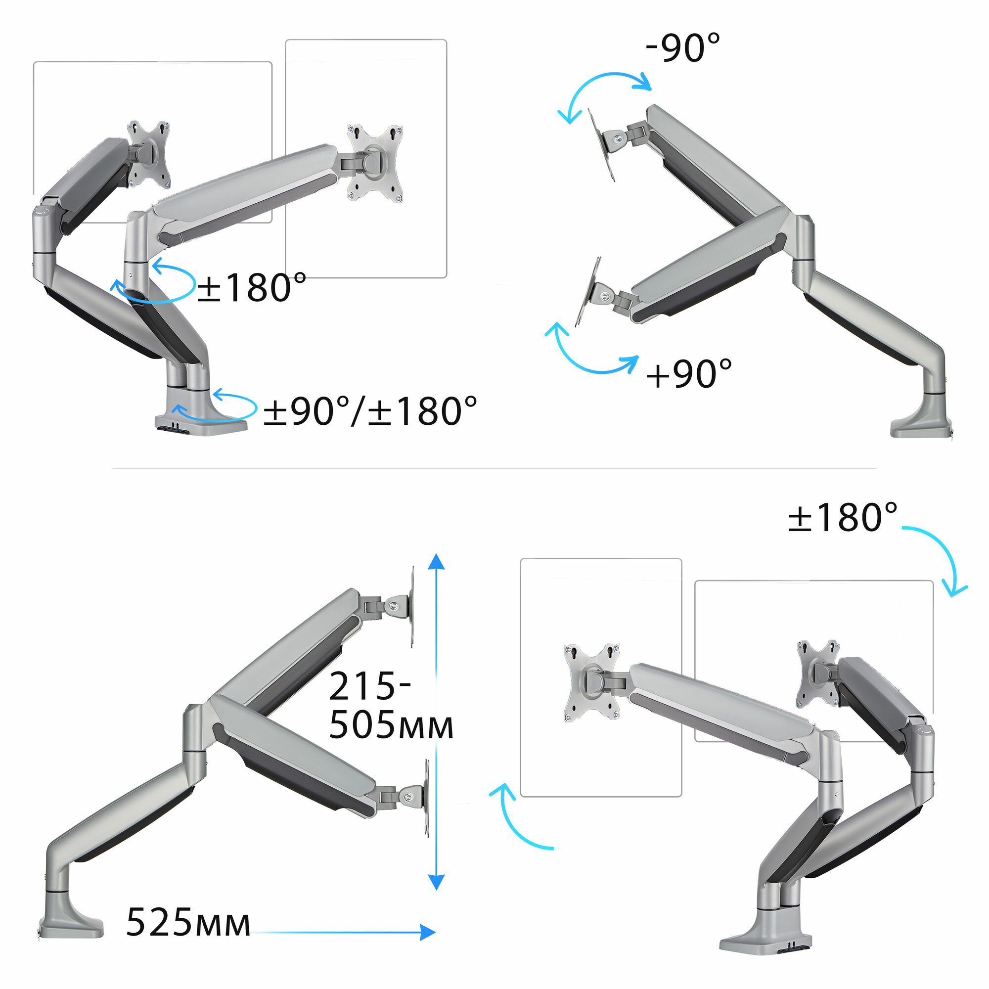 Кронштейн для двух мониторов 17″-35″ дюймов настольный GD82-C024 Matte Silver: сравнение цен, характеристики, фото, актуальное наличие и цены.
