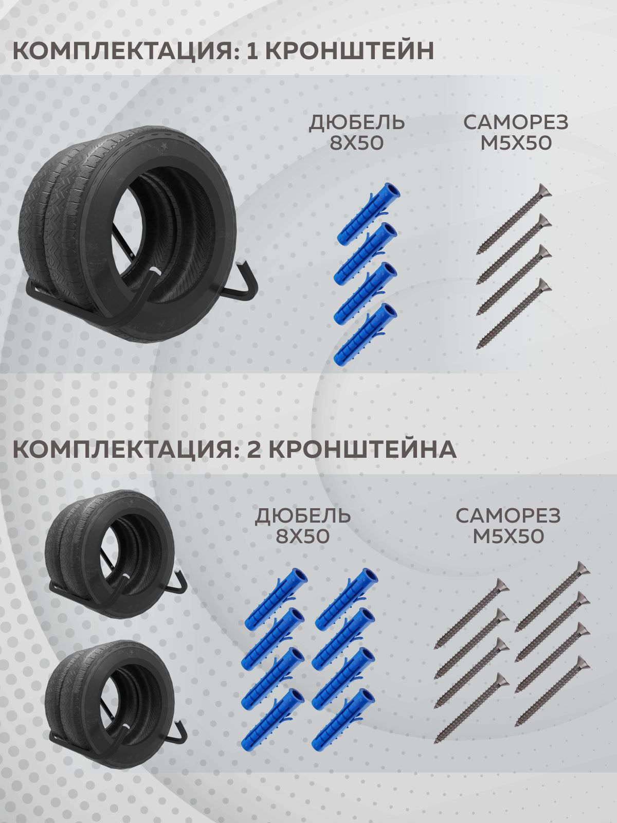 Кронштейн для шин Delta-Park BT-2, 2 штуки, черный 5005001_23 предназначен для сезонного хранения шин (без дисков), в гараже и на балконе, на складе и мастерской, кладовке и других местах.