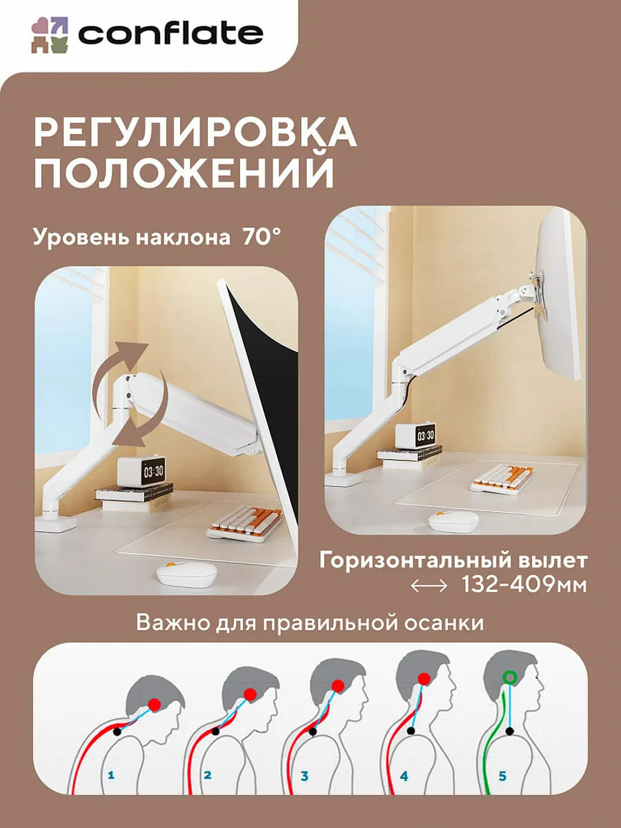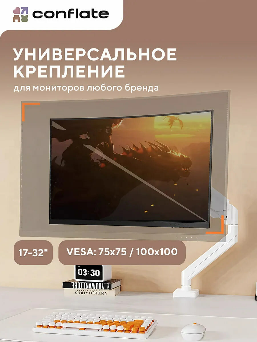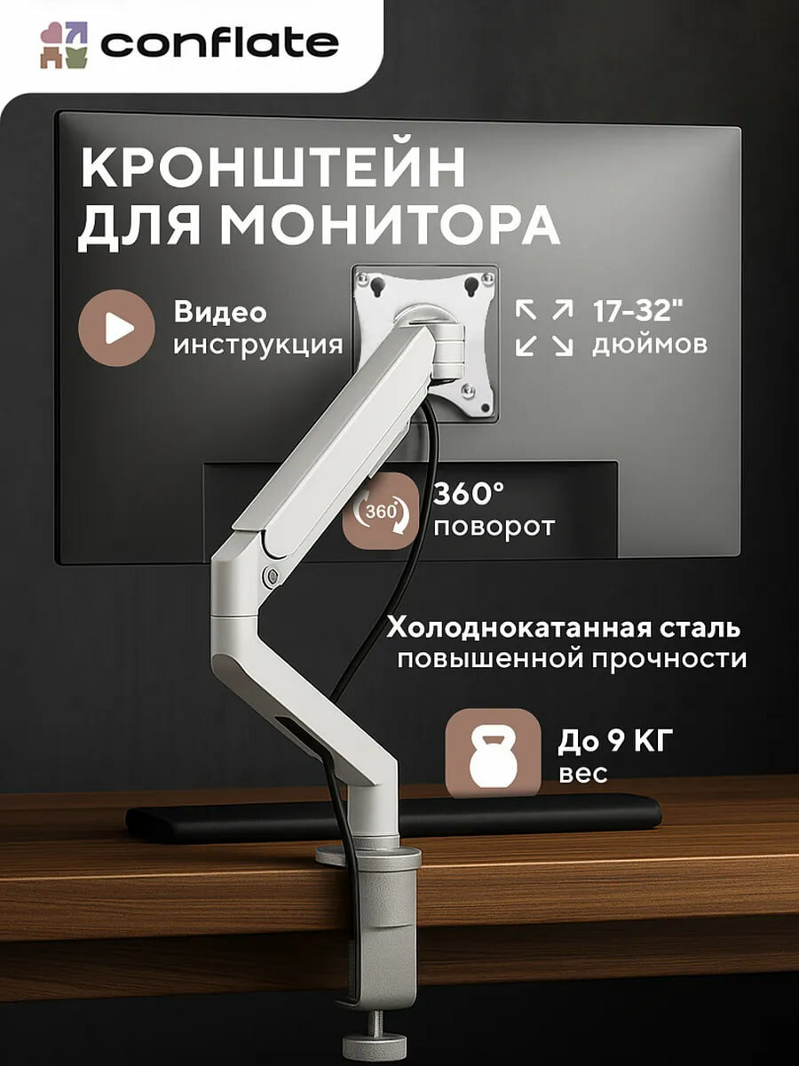 Кронштейн для монитора Conflate 17”-32” дюймов, настольный, регулируемый угл наклона: сравнение цен, характеристики, фото, актуальное наличие и цены.