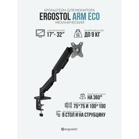 Кронштейн для монитора Ergostol Arm Eco, подставка под монитор 17-32 дюймов до 9 кг, настольный, черный: сравнение цен, характеристики, фото, актуальное наличие и цены.