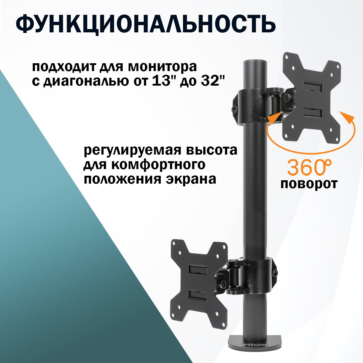 Купить Кронштейн для монитора Filum FL-DM001SB, одинарный, VESA: 75×75/100×100, два типа крепления, max — 10 кг, черный с доставкой по всей России.
