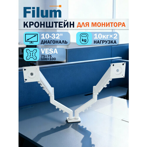 Купить Кронштейн для монитора Filum FL-DMG003DW белый, два монитора, VESA: 75/100, 10-32 дюйма, до 10 кг с доставкой по всей России. Кронштейн для монитора Filum FL-DMG003DW белый, два монитора, VESA: 75/100, 10-32 дюйма, до 10 кг: сравнение цен, характеристики, фото, актуальное наличие и цены.