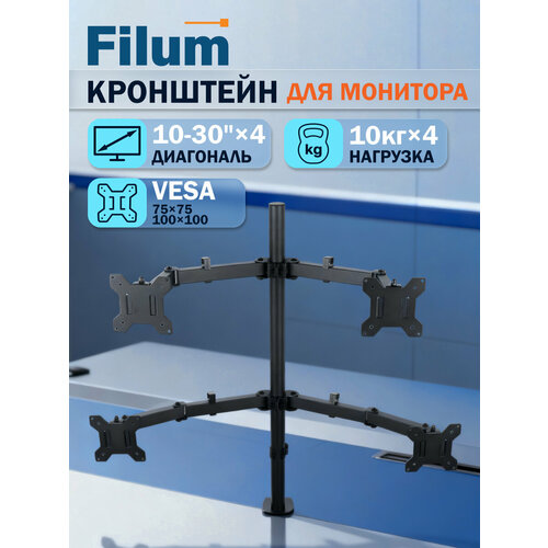 Купить Кронштейн для монитора Filum FL-DMT004FB черный, четыре монитора, VESA: 75/100, 10-32 дюйма, до 10 кг с доставкой по всей России. Кронштейн для монитора Filum FL-DMT004FB черный, четыре монитора, VESA: 75/100, 10-32 дюйма, до 10 кг: сравнение цен, характеристики, фото, актуальное наличие и цены.