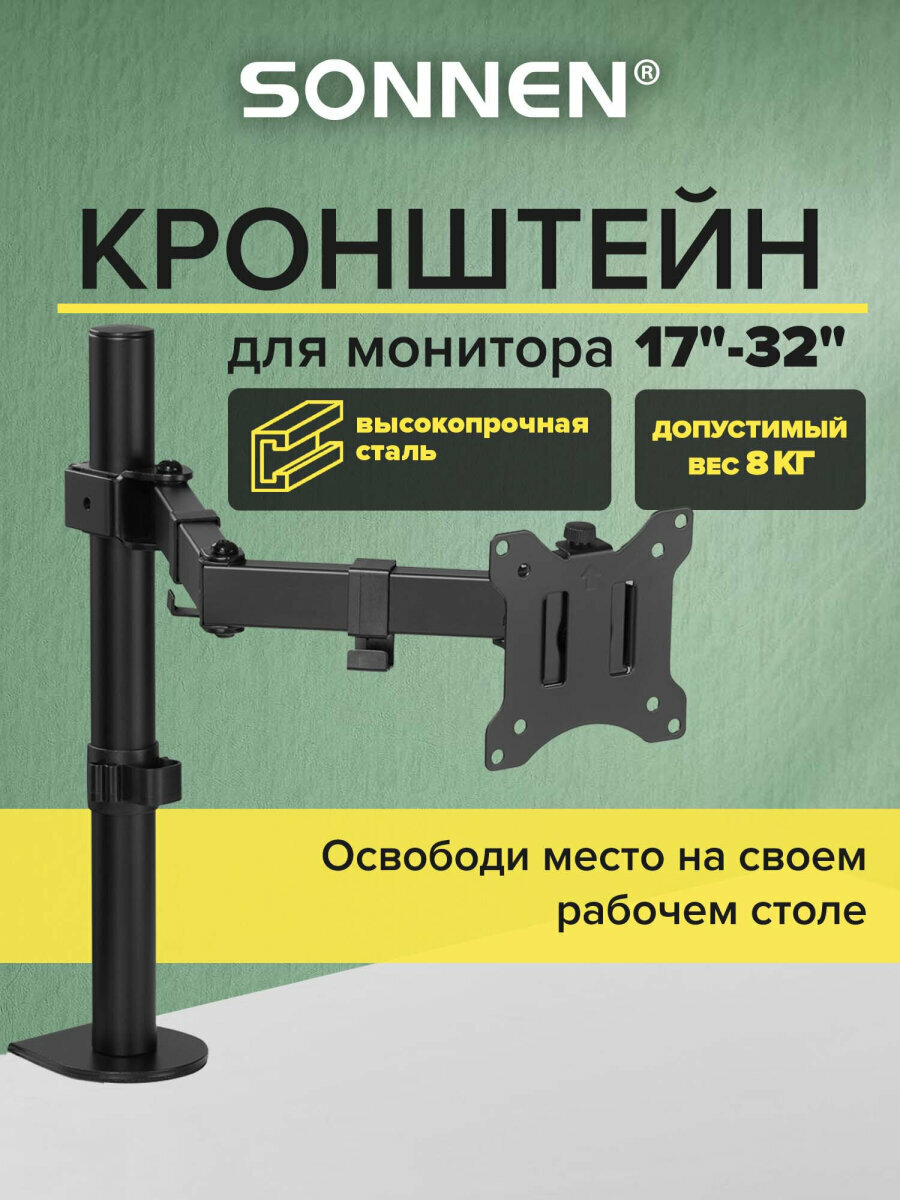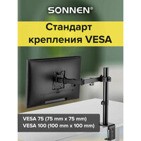 Кронштейн для монитора настольный VESA 75х75, 100х100, 17″-32″, до 8 кг, Sonnen Static, 455942: сравнение цен, характеристики, фото, актуальное наличие и цены.