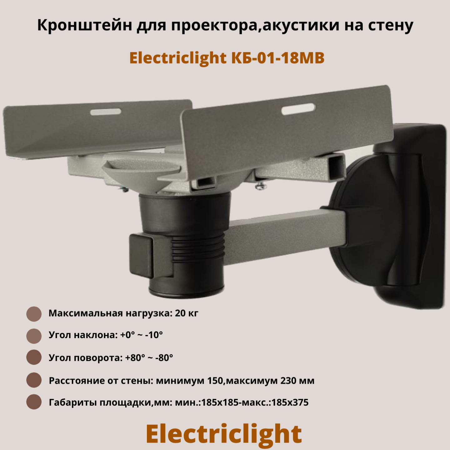 Кронштейн для проектора, акустики на стену наклонно-поворотный Electriclight КБ-01-18MB, металлик/черный: сравнение цен, характеристики, фото, актуальное наличие и цены.