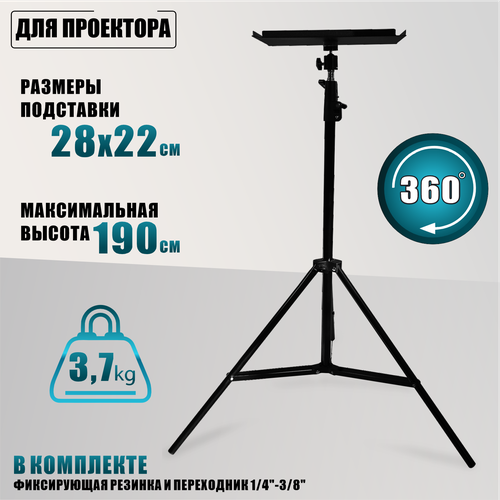 Кронштейн для проектора с фиксирующей резинкой на стойке - многофункциональный, легкий и невероятно удобный стол для проектора или ноутбука. Компактная и мобильная подставка под ноутбук с регулировкой угла наклона отличается своей функциональностью и эргономичным дизайном. В комплект входит усиленный напольный штатив и подставка для техники с фиксирующей резинкой, на которой может разместиться ноутбук, планшет, проектор, микшер, колонки, принтер, а также органайзер для документов, органайзер для канцелярии или другие аксессуары для ноутбуков и компьютеров. Мобильная стойка для ноутбука и проектора оснащена бортиками для защиты устройства от падений. Телескопическая подставка под ноутбук легко регулируется по высоте, позволяя выбрать удобное положение для работы или учебы без вреда для здоровья. Многофункциональная подставка под ноутбук на телескопическом штативе с регулировкой угла наклона подходит для использования дома и в офисе, а также для размещения ноутбука или проектора во время рабочих встреч, выступлений и презентаций. Подставка под ноутбук и проектор: компактное и многофункциональное решение с регулировкой угла наклона.