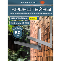 Подходит для установки различных моделей сплит-систем. Кронштейны для кондиционера 450 мм обеспечивают надежное крепление наружного блока. Заводская шлифованная (матовая), в некоторых моделях - полированная (зеркальная), поверхность предотвращает появление коррозии, а универсальный дизайн позволяет использовать крепеж не только как держатель кондиционера, но и как крепление для других конструкций.