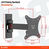 Кронштейн для телевизора или монитора на стену, диагональ 13-28 дюймов, UNITEKI FM1616B черный, крепление настенное, наклонно поворотное: сравнение цен, характеристики, фото, актуальное наличие и цены.