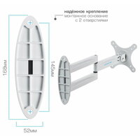 Кронштейн для LED/LCD телевизоров 10"-32", max 15 кг, настенный, 5 ст свободы, наклон ±90°, поворот 180°, от стены 75-455 мм, max VESA 100x100 мм, вращение экрана 360°