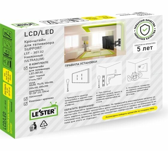 Кронштейн для телевизора на стену наклонный LST-301.02 TV: сравнение цен, характеристики, фото, актуальное наличие и цены.