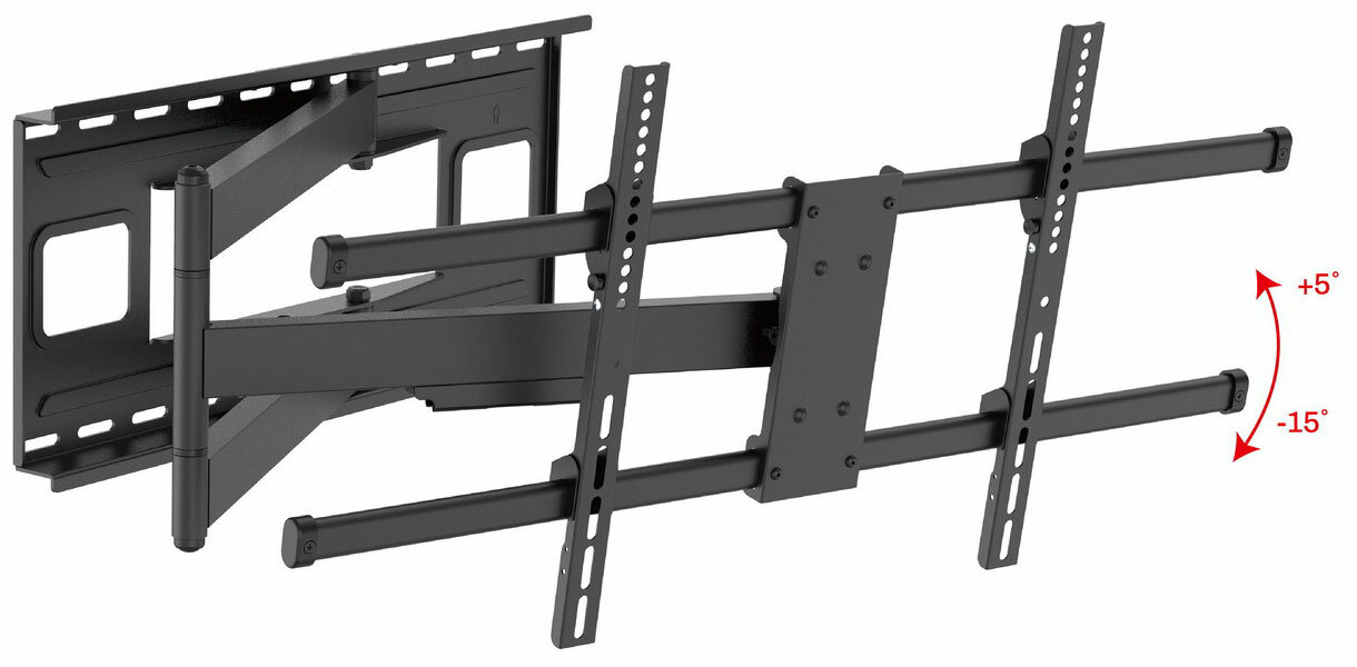 Настенный наклонно-поворотный кронштейн с большим вылетом UniTeki FML60 в черном цвете предназначен для дисплеев и панелей с диагональю от 43 до 80 дюймов (109 - 203 см.).