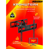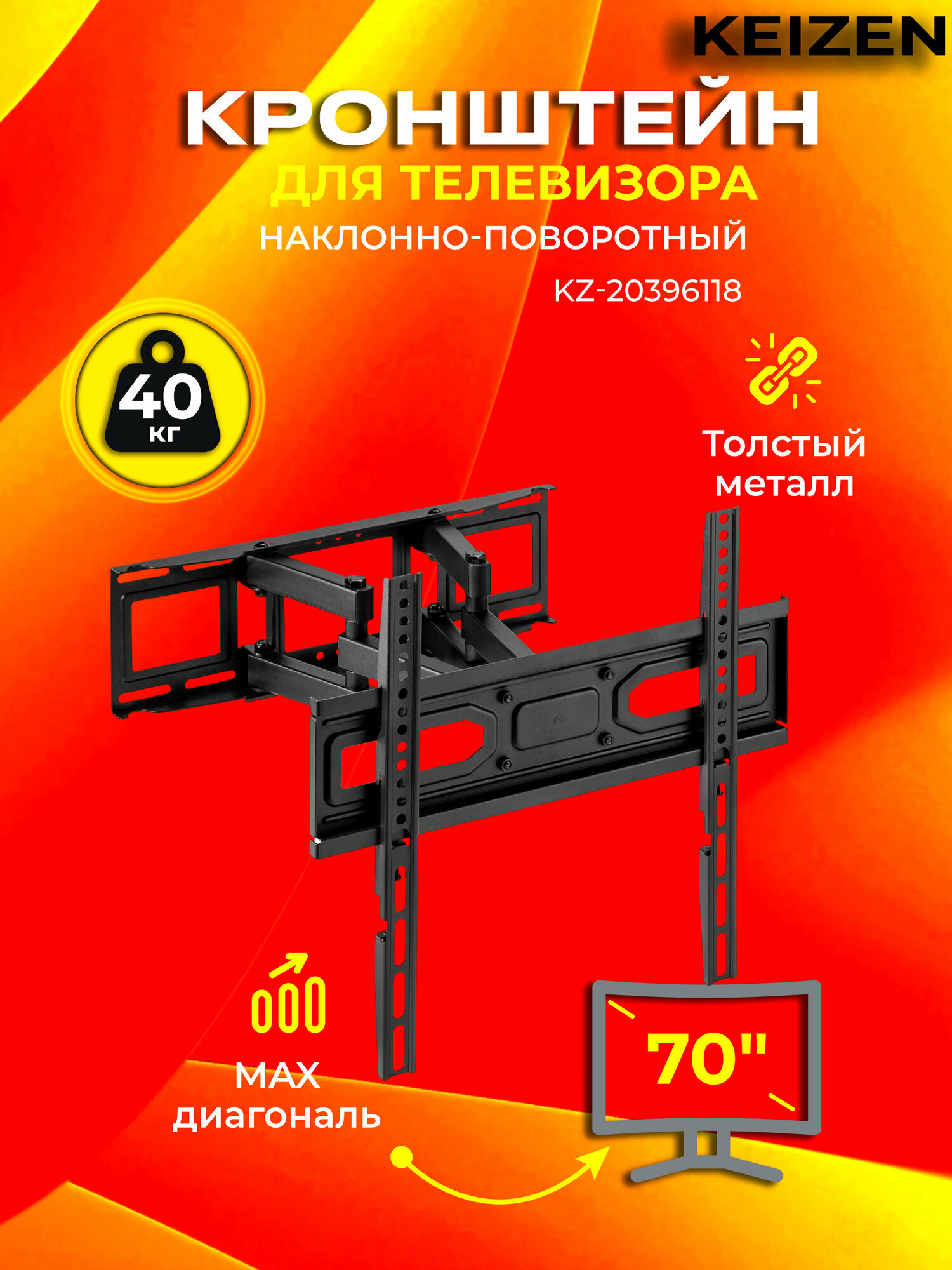 Кронштейн для телевизора на стену поворотный KEIZEN KZ-20396118 представляет собой универсальный настенный аксессуар, предназначенный для телевизоров и мониторов с диагональю от 32 до 70 дюймов. Он рассчитан на максимальную нагрузку до 40 кг, что обеспечивает надежность и долговечность использования. Кронштейн оснащен креплением VESA, совместимым с различными размерами, включая 100x100, 100x150, 100x200, 150x150, 200x200, 300x200, 400x200, 300x300, 400x300 и 400x400.