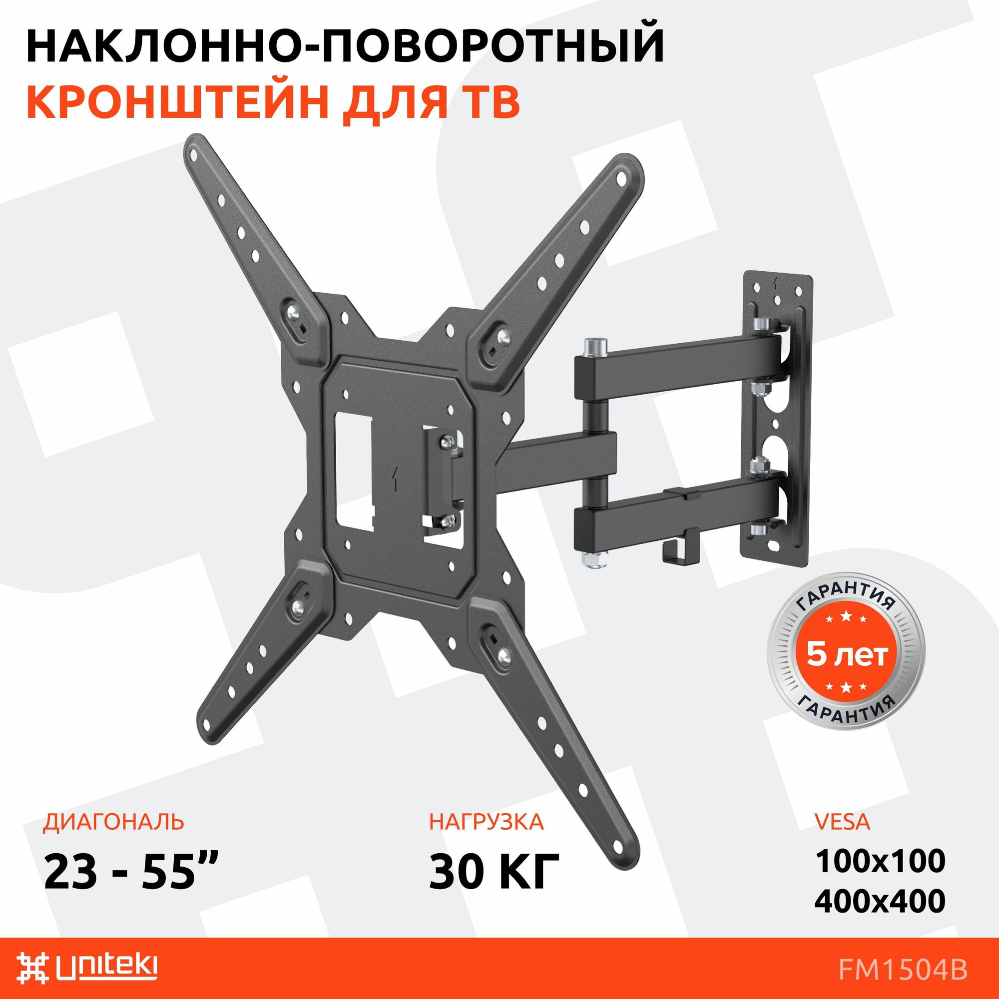 Кронштейн UNITEKI FM1504B не оставит никого равнодушным, потому, что он подходит для всех телевизоров, диагональю от 23 до 55 дюймов (см: 58 ~ 139) и весом до 30 кг.