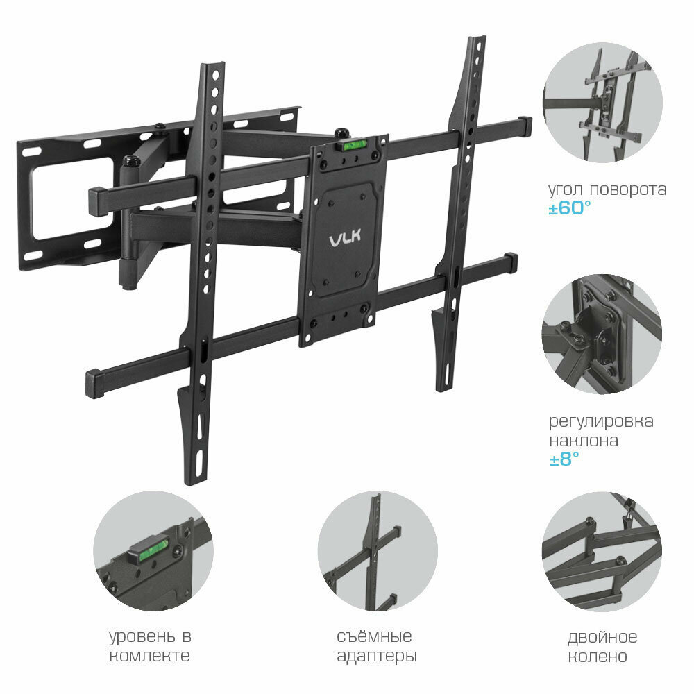 Кронштейн для телевизора настенный наклонно-поворотный VLK TRENTO-201 / до 80 дюймов / vesa 600*400: сравнение цен, характеристики, фото, актуальное наличие и цены.