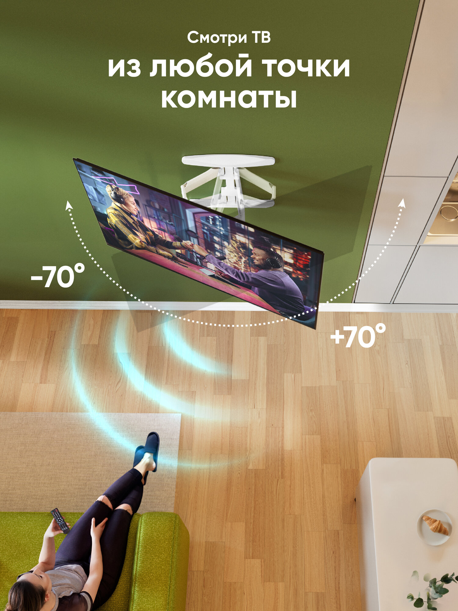 3. Поворот экрана до 140° позволит вам насладиться просмотром ТВ из любой части помещения. Будь то гостиная, кухня или спальня, ваш телевизор всегда будет находиться в нужном для вас положении.