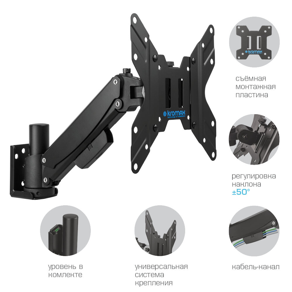 Кронштейн для телевизора настенный наклонно-поворотный KROMAX ORION-11 / до 48 дюймов / vesa 200×200: сравнение цен, характеристики, фото, актуальное наличие и цены.
