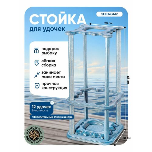Дополнительный центральный отсек позволяет хранить удочки в чехлах или другие рыболовные аксессуары, что делает стойку не только функциональной, но и универсальной. Компактные размеры и эстетичный дизайн делают подставку идеальным решением для бережного хранения ваших любимых снастей, сохраняя порядок и экономя пространство.