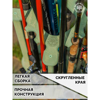 Дополнительный центральный отсек позволяет хранить удочки в чехлах или другие рыболовные аксессуары, что делает стойку не только функциональной, но и универсальной. Компактные размеры и эстетичный дизайн делают подставку идеальным решением для бережного хранения ваших любимых снастей, сохраняя порядок и экономя пространство.