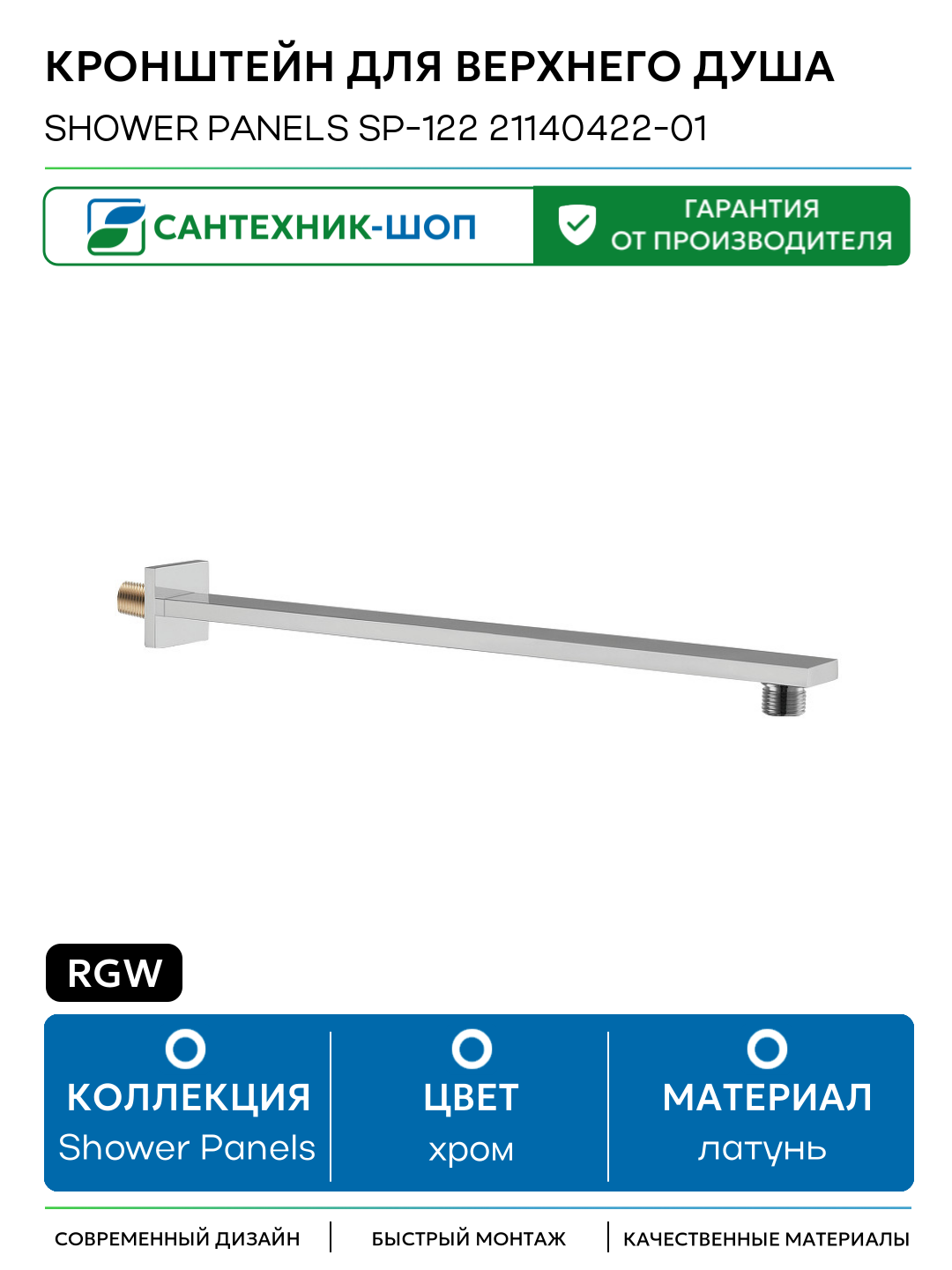 Кронштейн для верхнего душа RGW Shower Panels SP-122 21140422-01 Хром латунь на стену: сравнение цен, характеристики, фото, актуальное наличие и цены.