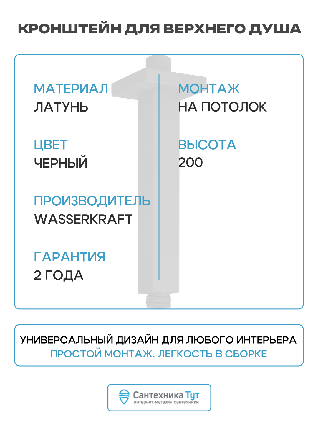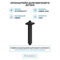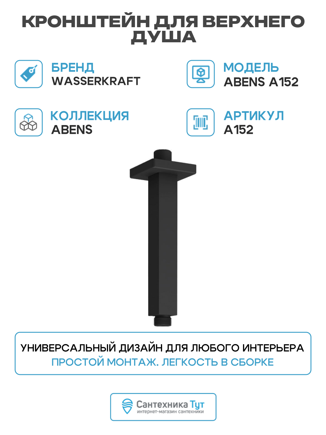 Кронштейн для верхнего душа WasserKRAFT Abens A152 Черный матовый латунь на потолок: сравнение цен, характеристики, фото, актуальное наличие и цены.