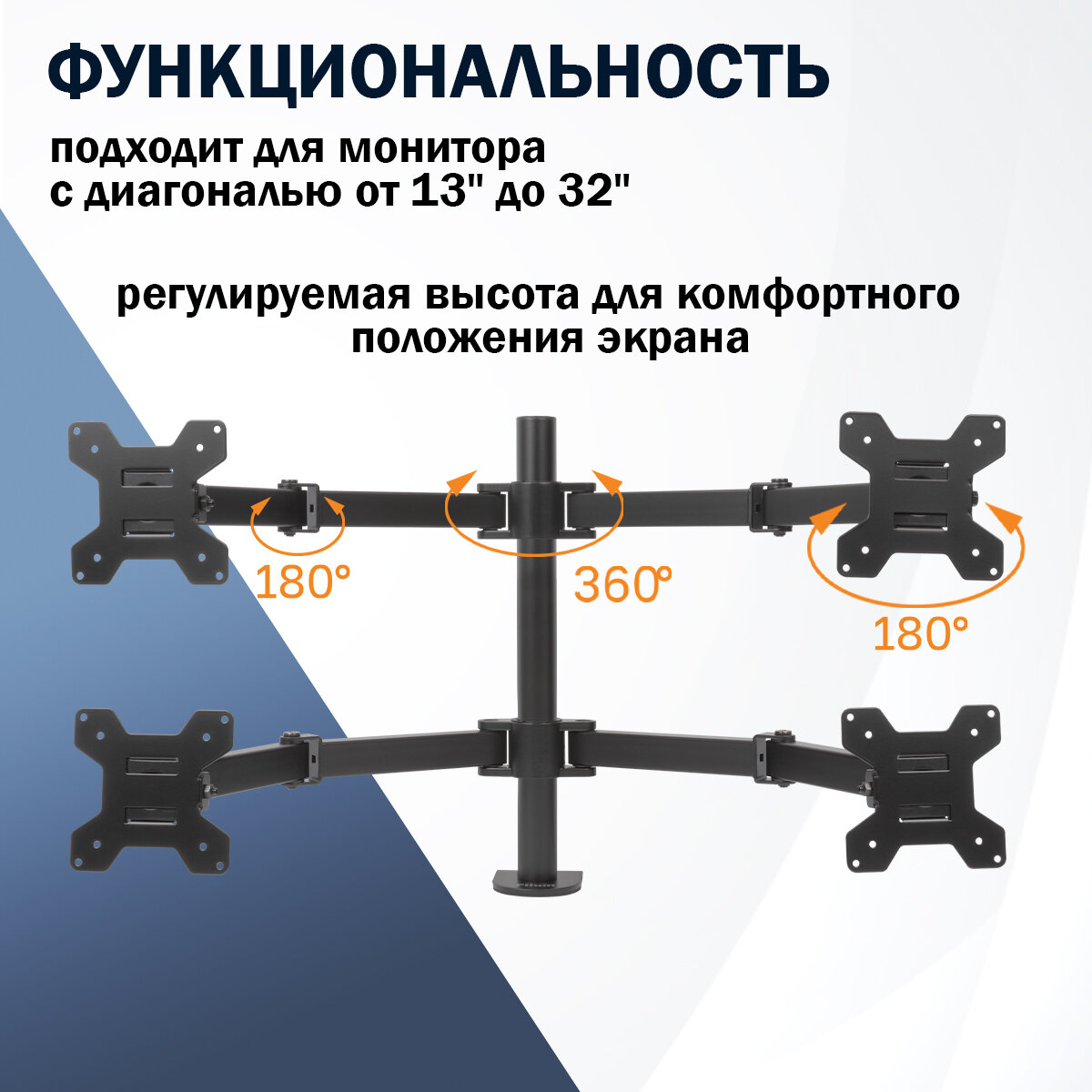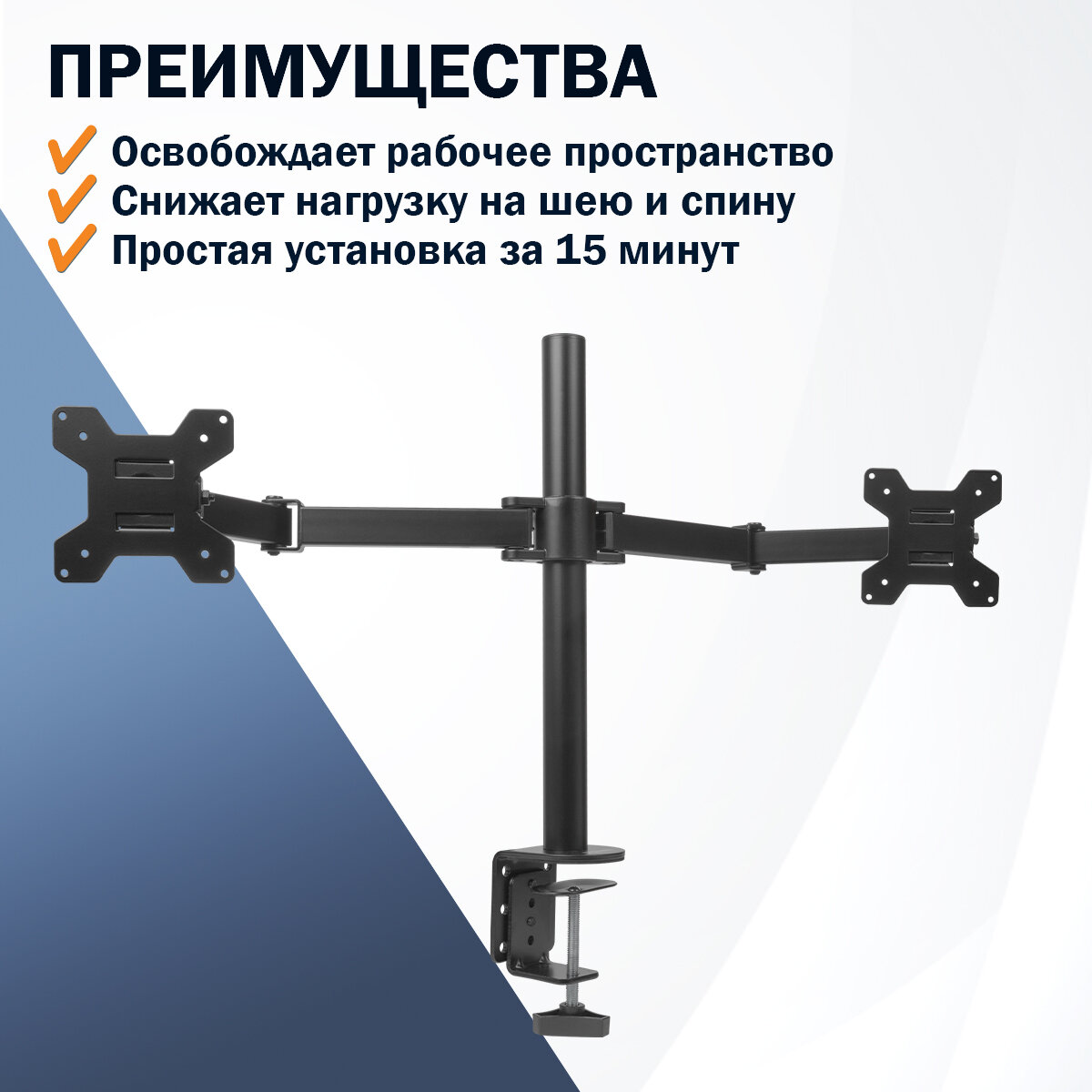 Купить Кронштейн Filum FL-DM001DB, двойной, VESA: 75×75/100×100, два типа крепления, max 10кг, черный с доставкой по всей России.