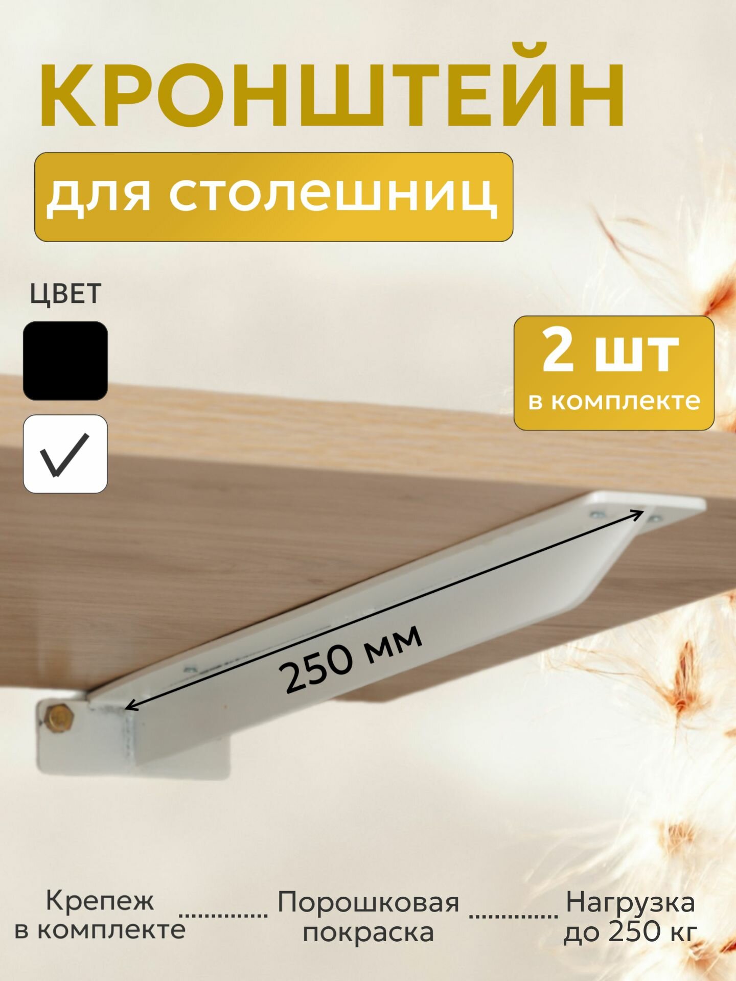 Кронштейн металлический Т-образный усиленный на стену для полки и столешницы, 25 см, 2 шт, белый: сравнение цен, характеристики, фото, актуальное наличие и цены.