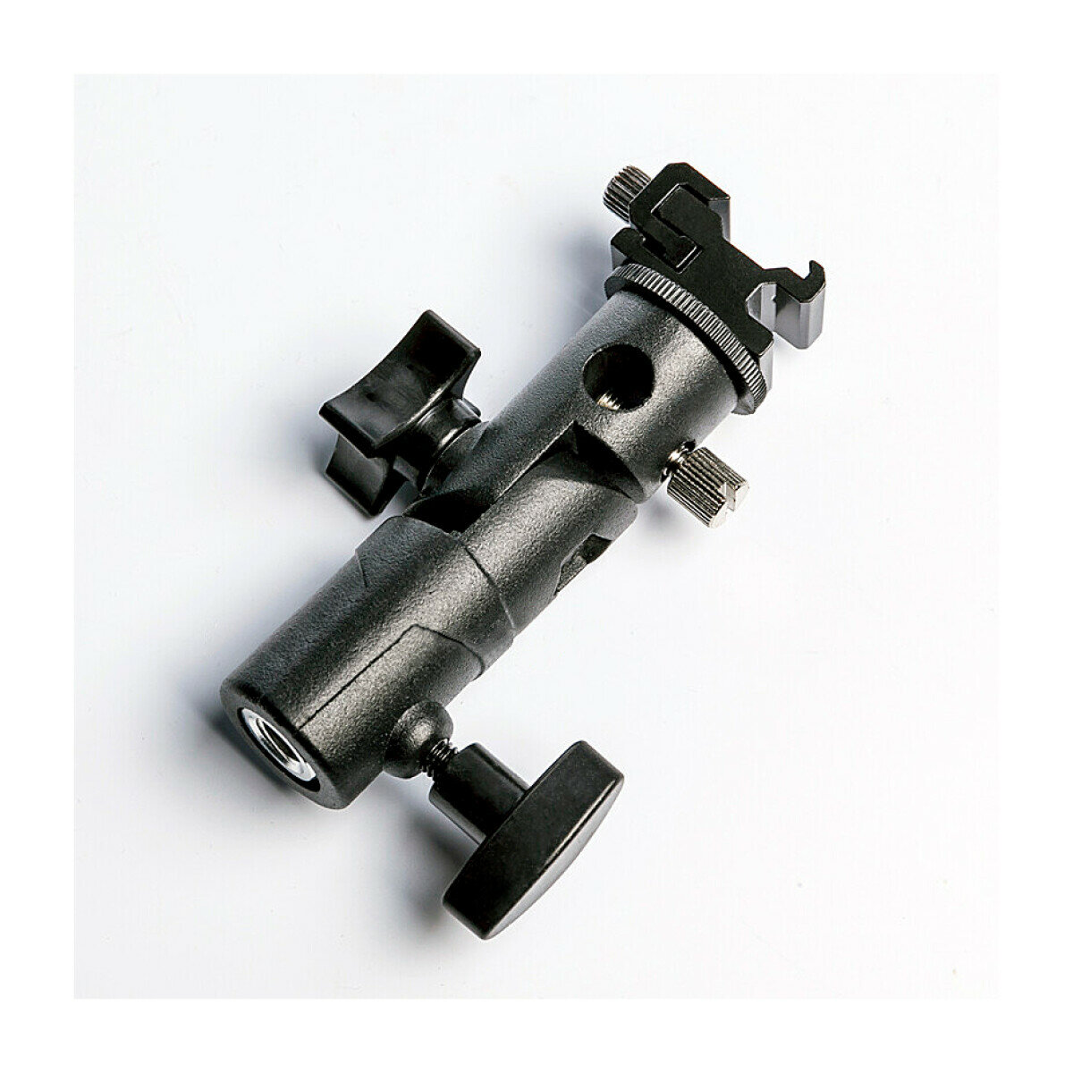 Предназначен для монтажа осветительного оборудования и зонтов со стандартными резьбовыми креплениями 1/4", 3/8", 5/8" и креплением горячий башмак. Регулируемый угол наклона – 180 градусов. Адаптер изготовлен из алюминиевого сплава и металла.