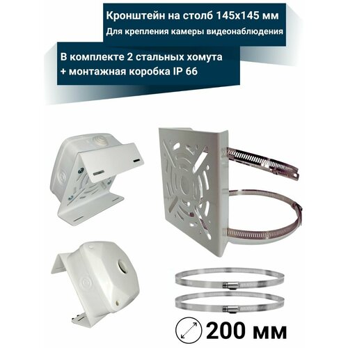 Купить Кронштейн на столб 145х145 мм для крепления камеры видеонаблюдения со стальными хомутами диаметр 200 мм + монтажная коробка с доставкой по всей России. Кронштейн на столб 145х145 мм для крепления камеры видеонаблюдения со стальными хомутами диаметр 200 мм + монтажная коробка: сравнение цен, характеристики, фото, актуальное наличие и цены.