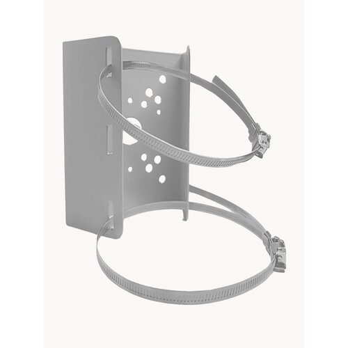 Кронштейн крепления на столб видеокамеры представляет собой конструкцию, состоящую из основания которое крепится к поверхности столба при помощи крепежной стальных хомутов (в комплекте 2 шт, диаметром до 300 мм)