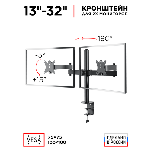 Кронштейн настольный для двух мониторов 13″-32″ HOLDER MDS-SU203, до 8 кг, черный: сравнение цен, характеристики, фото, актуальное наличие и цены.