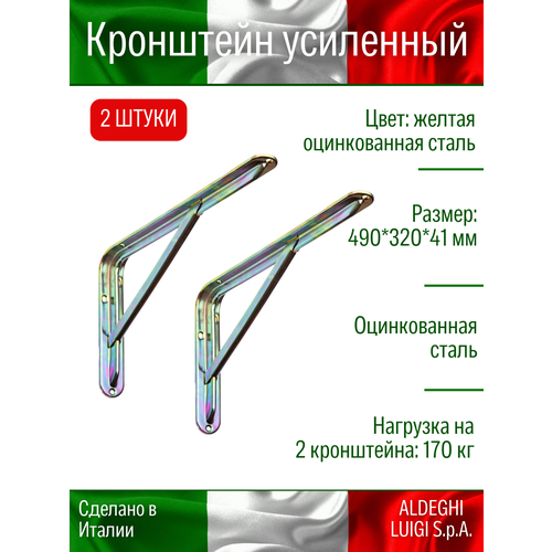 Купить Кронштейн с ребром ALDEGHI LUIGI SpA 490х320х41 мм, оцинкованный, цвет: жёлтая оцинкованная сталь 170 кг, 2 шт, 2521AT55_P8_U2 с доставкой по всей России. Кронштейн с ребром ALDEGHI LUIGI SpA 490х320х41 мм, оцинкованный, цвет: жёлтая оцинкованная сталь 170 кг, 2 шт, 2521AT55_P8_U2: сравнение цен, характеристики, фото, актуальное наличие и цены.