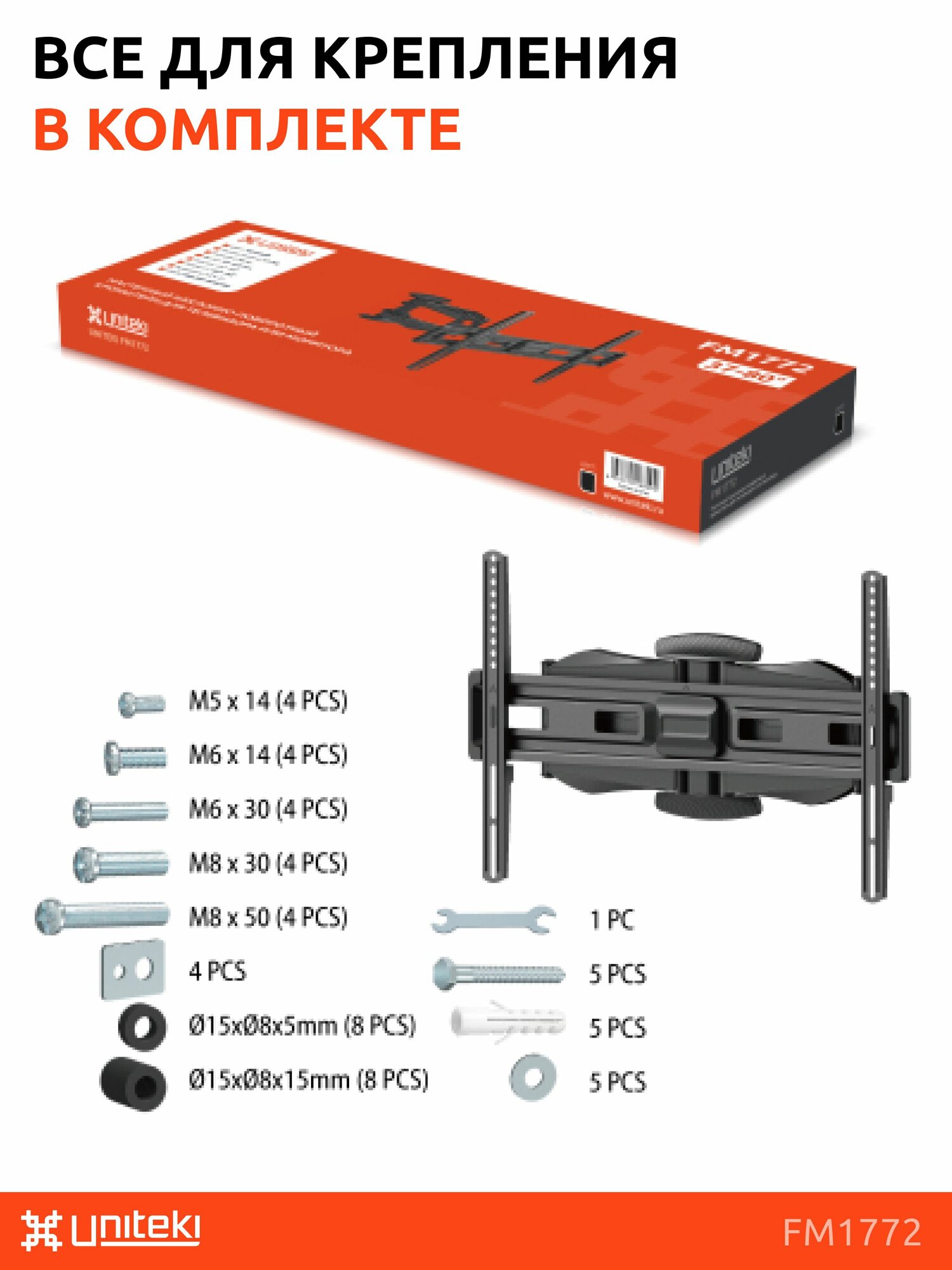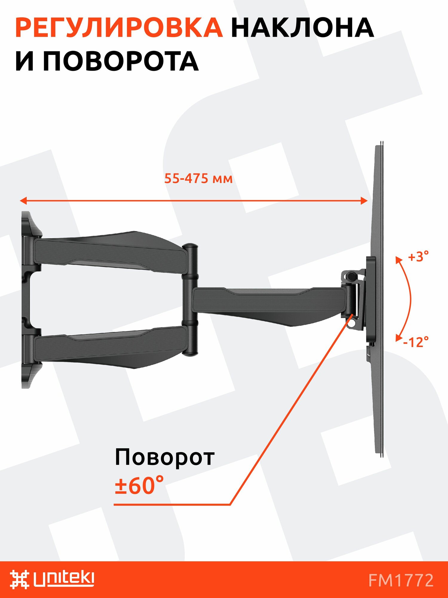 Кронштейн для телевизора на стену выдвижной, наклонно поворотный UNITEKI FM1772 черный диагональ 37-80 дюймов: сравнение цен, характеристики, фото, актуальное наличие и цены.