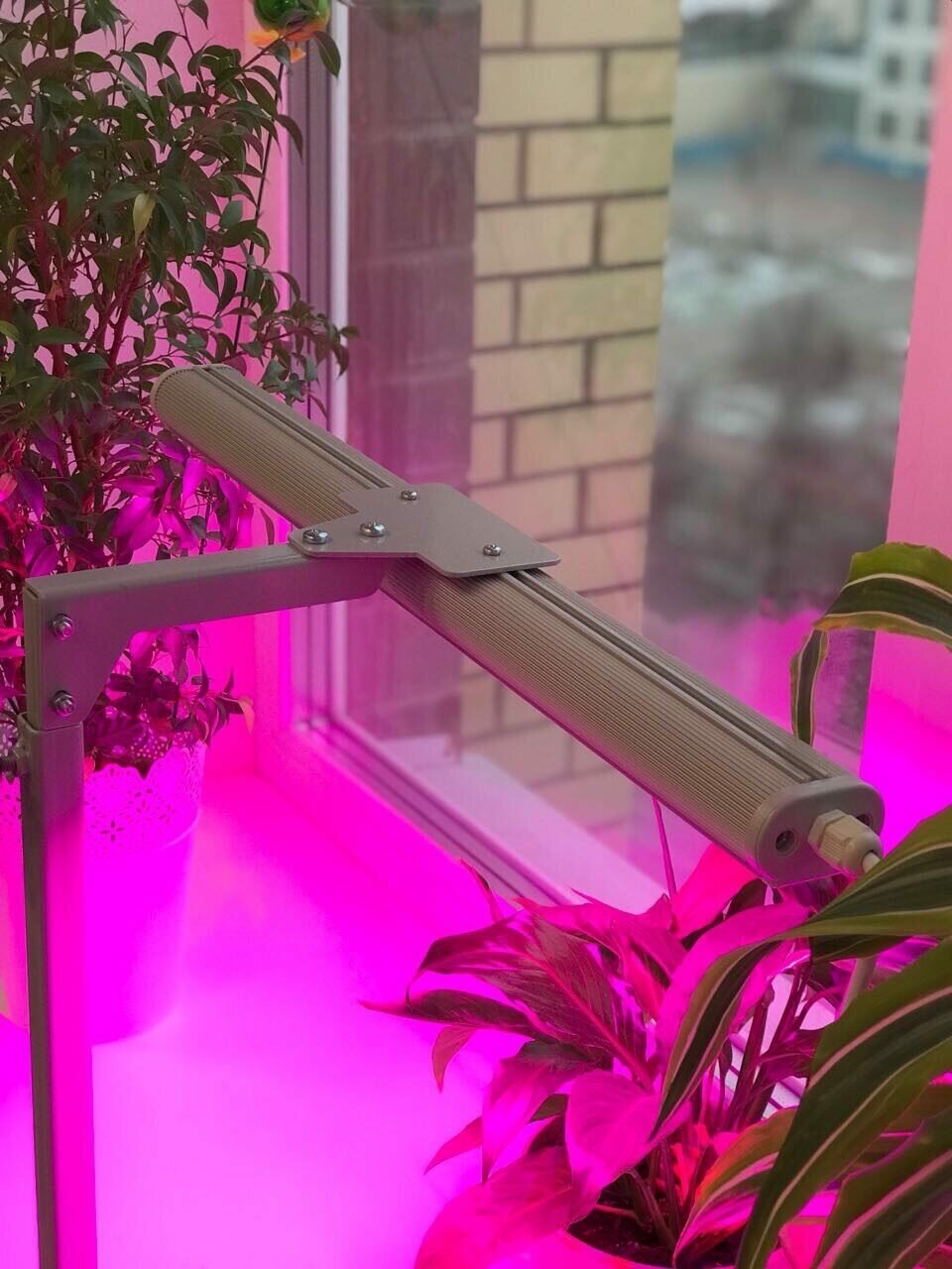 Металлический регулируемый кронштейн для крепления фитосветильника над любой горизонтальной поверхностью. Регулируемая высота от 40 до 100см. Способ крепления: струбцина Цвет: металлик (порошковое напыление)