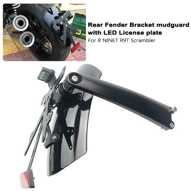 Купить Кронштейн заднего крыла R NINET для BMW R NINET R9T Scrambler 2014-2023 2021 2022, брызговик со светодиодным номерным знаком, Черный с доставкой по всей России.