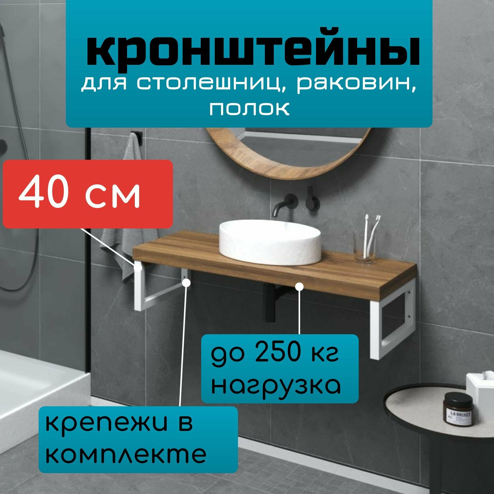 Кронштейны 2 шт 40 см для столешниц, раковин и полок, цвет белый: сравнение цен, характеристики, фото, актуальное наличие и цены.