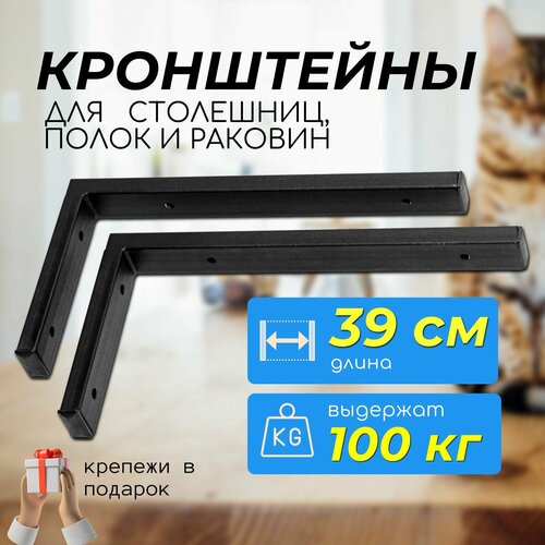 Комплект 2 шт. настенных кронштейнов для столешниц, раковин, полок, микроволновой печи и тд. Длина 39 см. Высота 20 см. Ширина профиля 2 см.