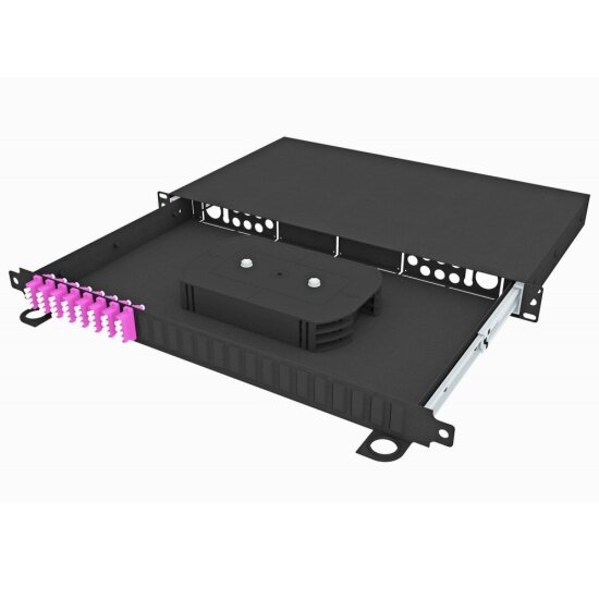 Купить Кросс оптический Toplan стоечный выдвижной 19″, 32 LC/UPC адаптера, многомодовый MM(OM4) 50/125, 1U, черный, укомплектованный с доставкой по всей России.