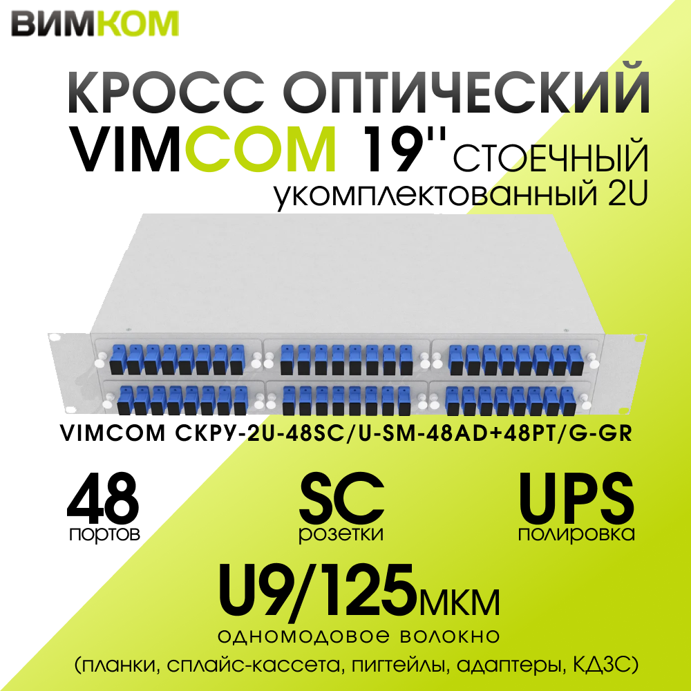 Кросс стоечный оптический VIMCOM 19′ укомплектованный 2U, 48 портов SC/UPC, 9/125 мкм (планки, сплайс-кассета, пигтейлы, адаптеры, КДЗС), серый: сравнение цен, характеристики, фото, актуальное наличие и цены.