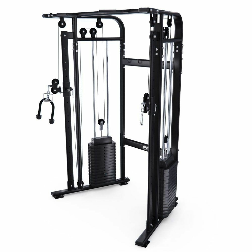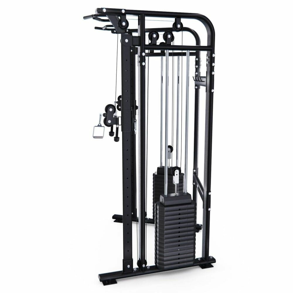 Кроссовер DFC D71506 / стек 180 кг Кроссовер DFC D71506 — это силовая рама со встроенным весом для домашнего использования, которая позволяет прокачивать все мышцы тела благодаря возможности регулировки. На тренажёре можно выполнять различные упражнения, такие как тяга руками (в разных положениях), приседания с весом, махи, упражнения на укрепление мышц кора и подтягивания.