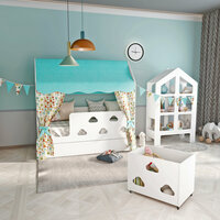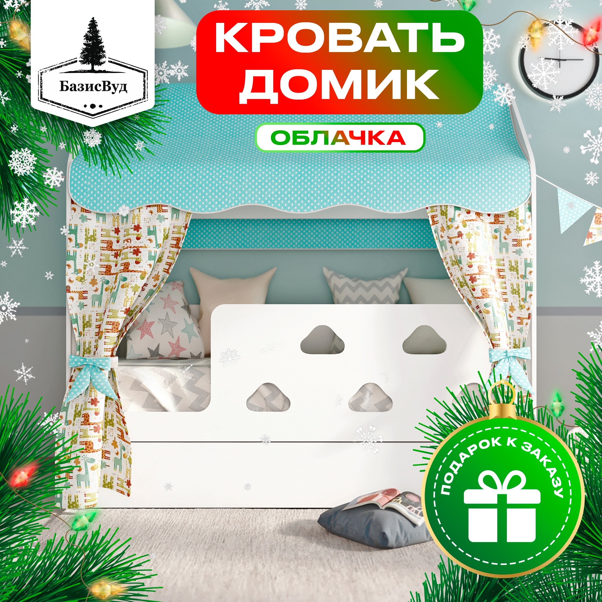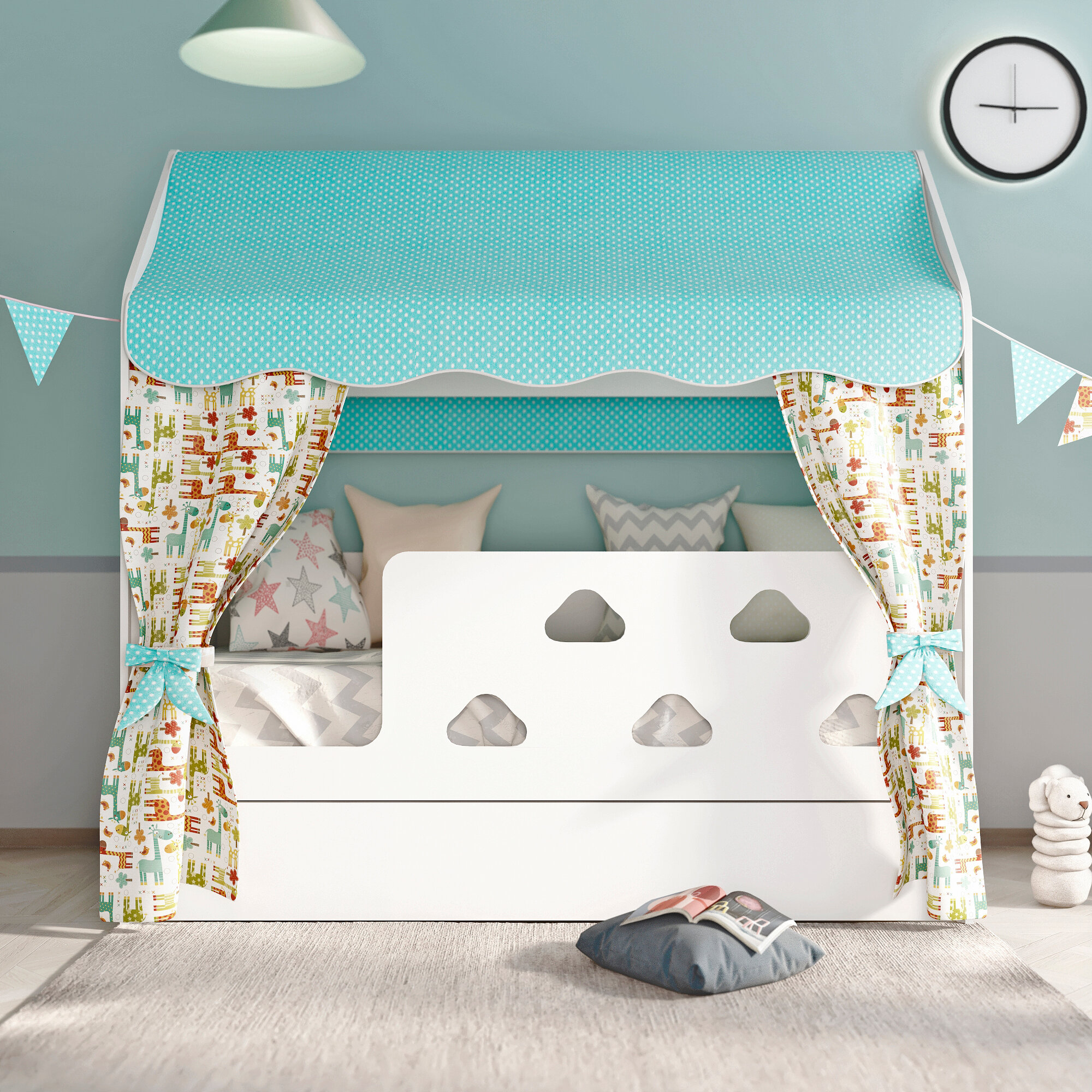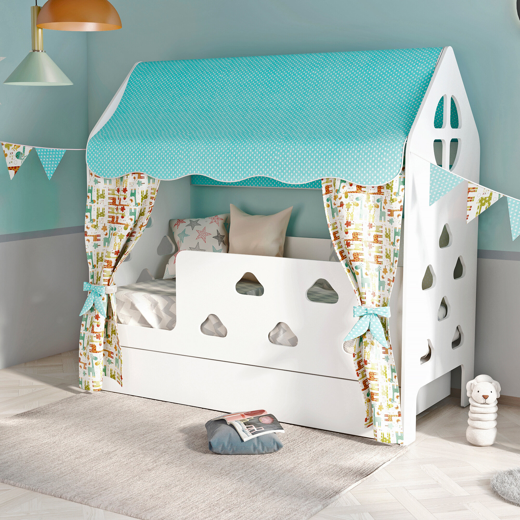Кровать детская домик с текстилем и ящиком (бирюзовый, с жирафиками) «Облачка»: сравнение цен, характеристики, фото, актуальное наличие и цены.