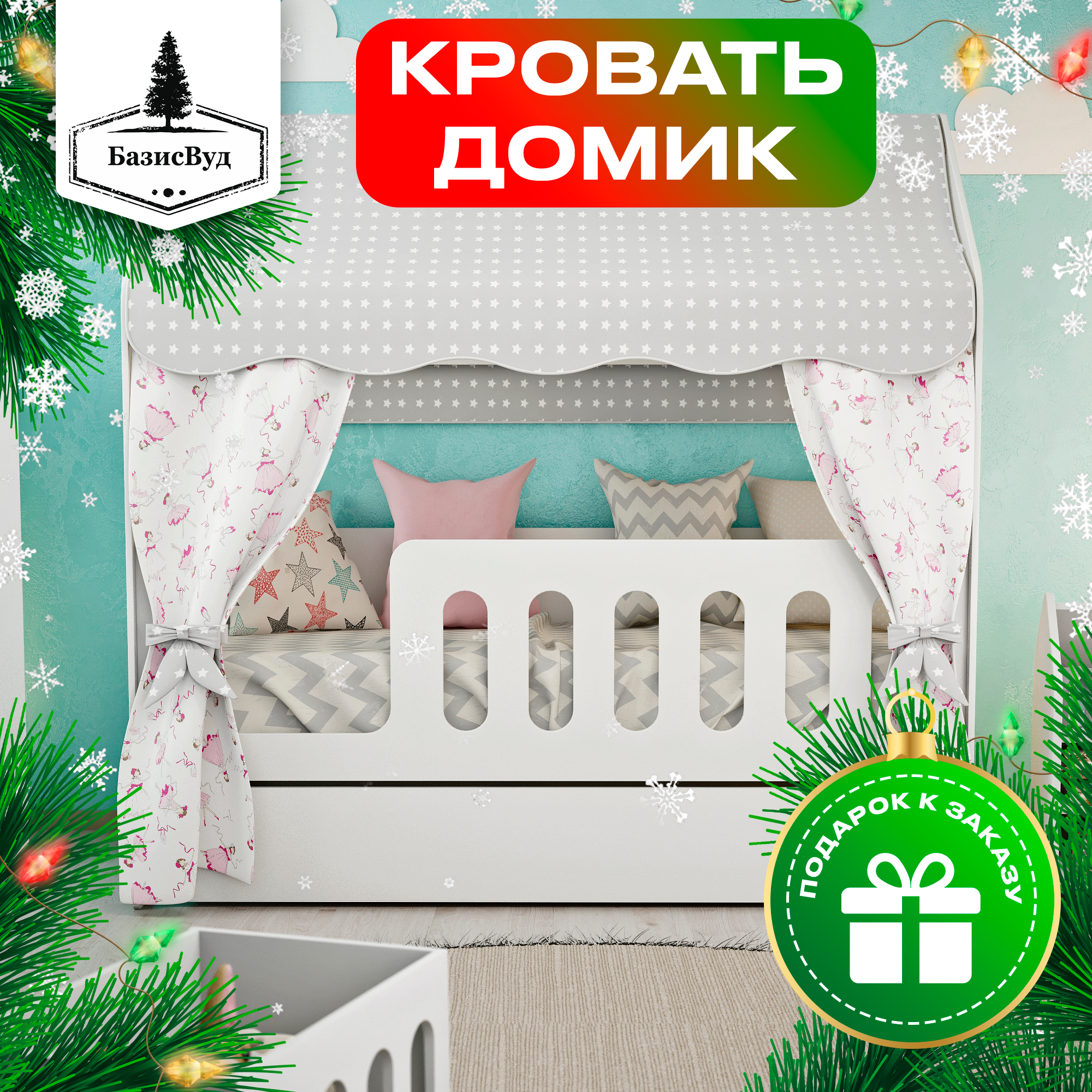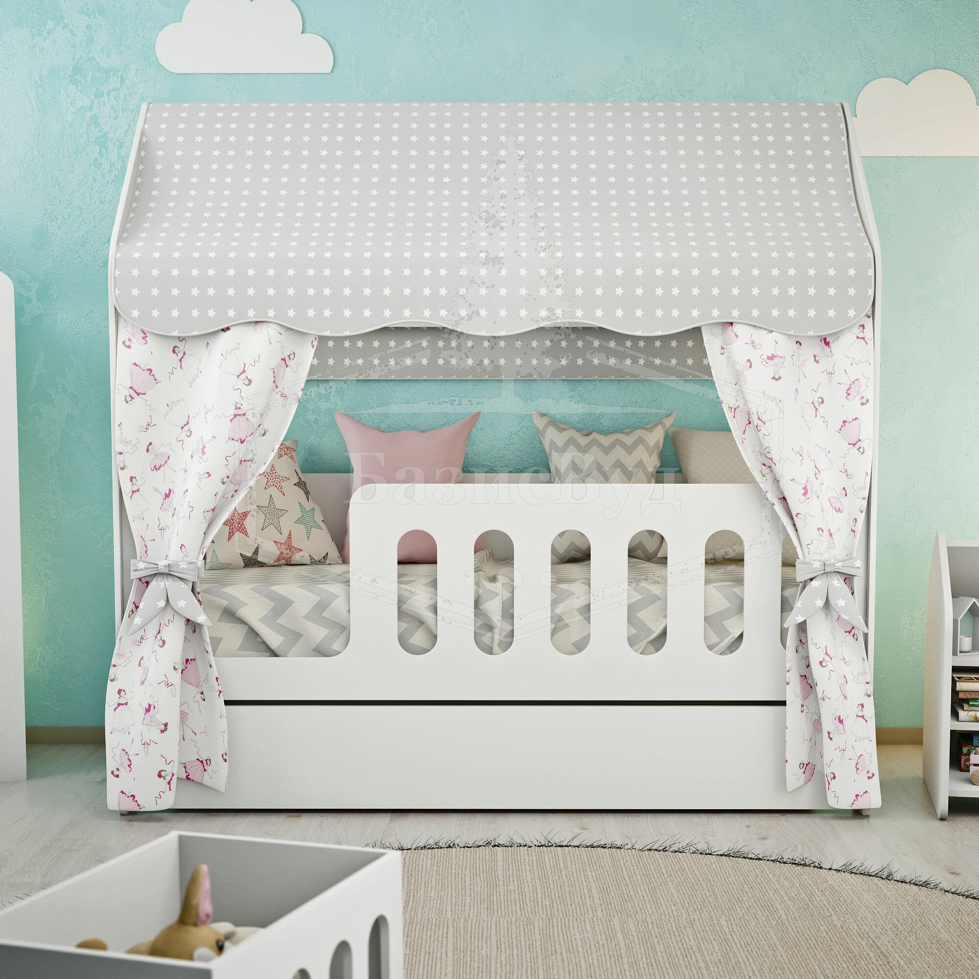 Купить Кровать детская домик с текстилем и ящиком (серый с принцессами) «Классик» с доставкой по всей России.