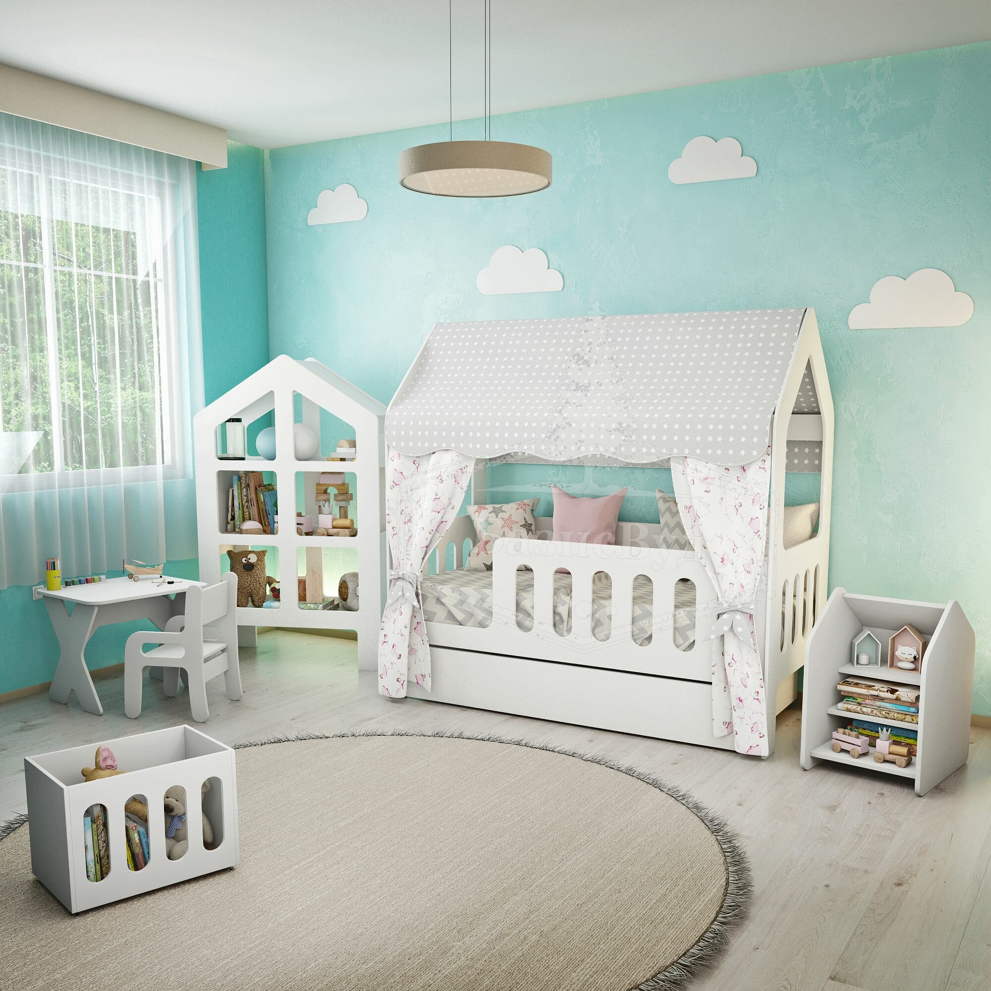 Кровать детская домик с текстилем и ящиком (серый с принцессами) «Классик»: сравнение цен, характеристики, фото, актуальное наличие и цены.