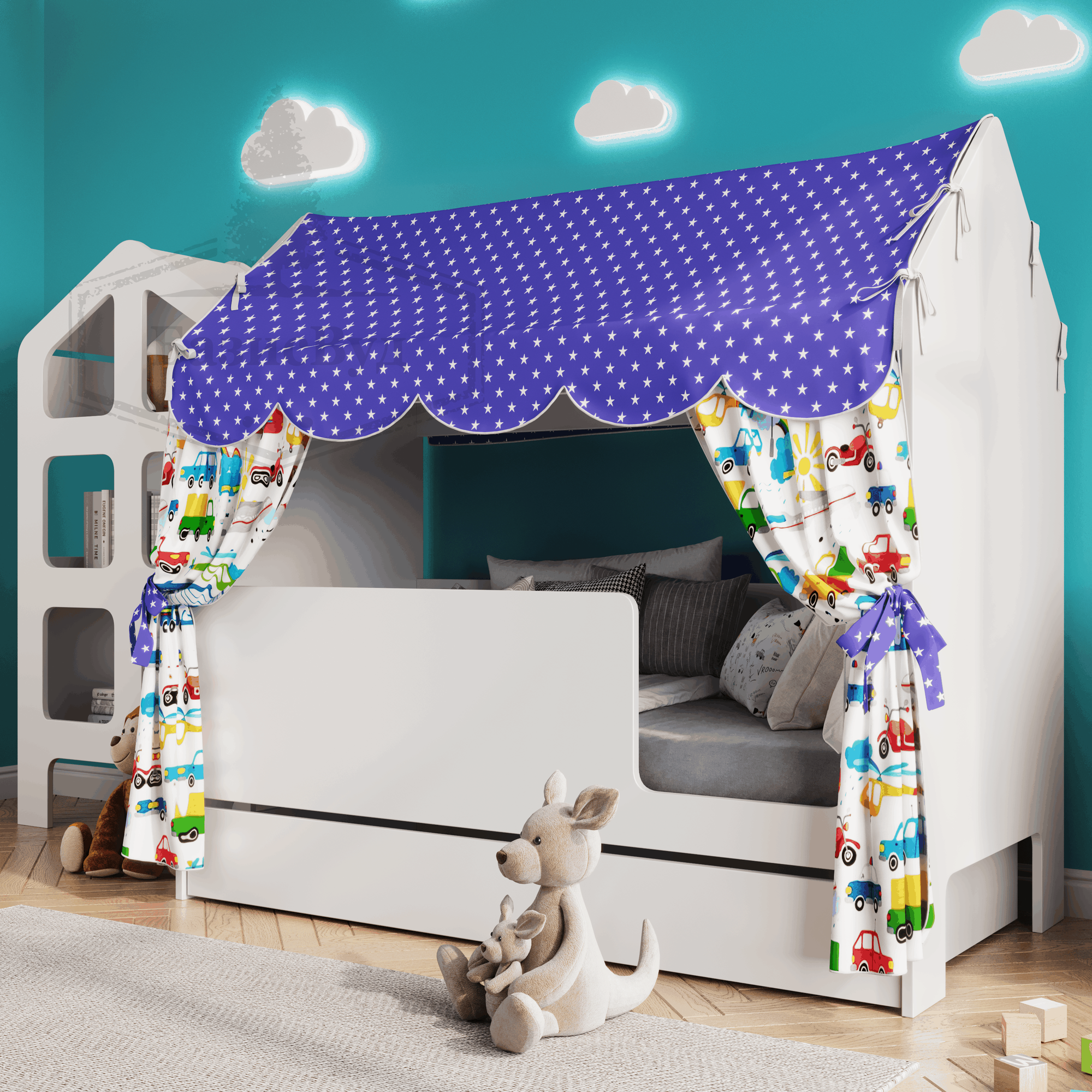 Купить Кровать детская домик с текстилем и ящиком (синий, с машинками) «Базовый» с доставкой по всей России. Кровать детская домик с текстилем и ящиком (синий, с машинками) «Базовый»: сравнение цен, характеристики, фото, актуальное наличие и цены.