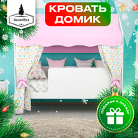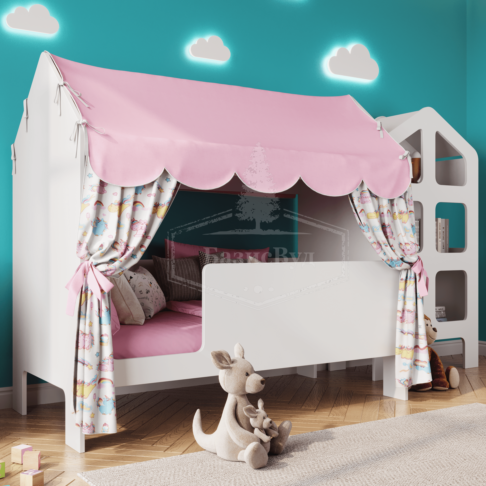 Кровать-домик, Кровать детская с бортиком под матрас 160х80, БазисВуд «Базовый» с текстилем (розовый, с единорогами): сравнение цен, характеристики, фото, актуальное наличие и цены.