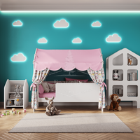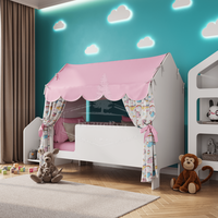 Купить Кровать-домик, Кровать детская с бортиком под матрас 160х80, БазисВуд «Базовый» с текстилем (розовый, с единорогами) с доставкой по всей России.