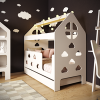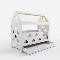 в форме домика, для детей, с бортиком, с изножьем, с ящиком для белья, усиленная конструкция