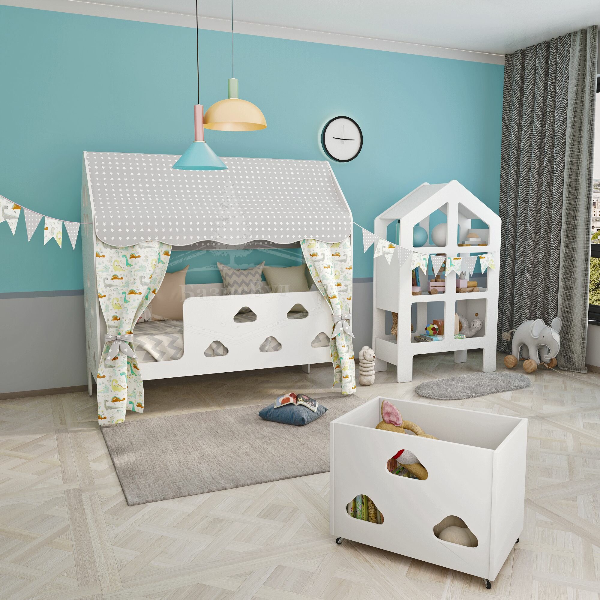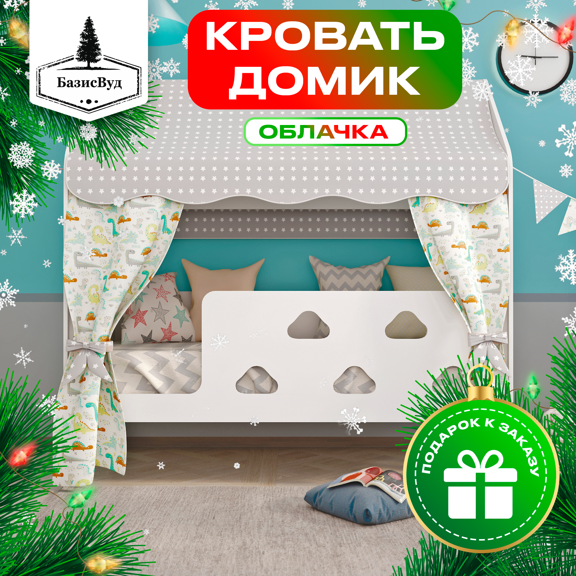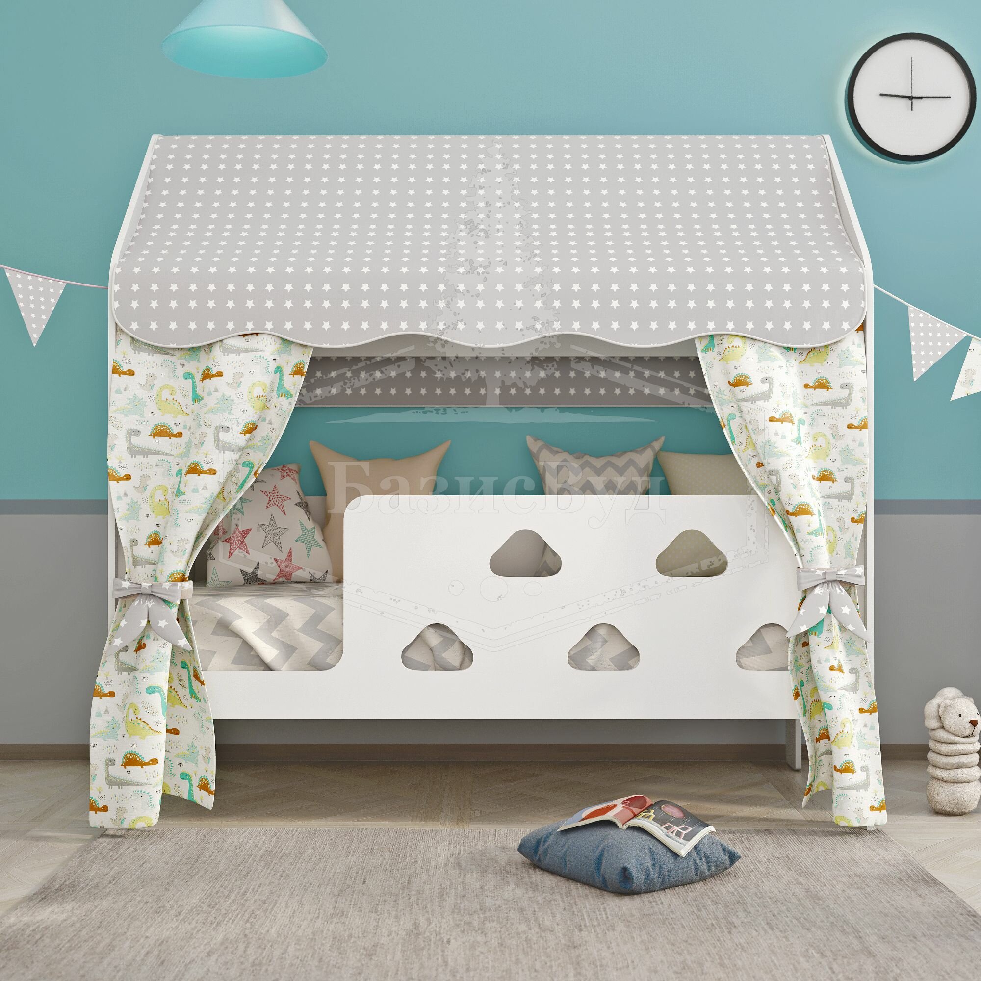 Кровать детская с бортиком под матрас 160х80, кровать-домик «Облачка» с текстилем (серый, с динозавриками), БазисВуд: сравнение цен, характеристики, фото, актуальное наличие и цены.