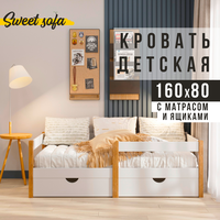 Кровать детская с матрасом и ящиками для белья «Sweet Sofa» 160х80 см; натуральный цвет: сравнение цен, характеристики, фото, актуальное наличие и цены.