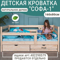 Кровать детская Софа 1, неокрашенная, натуральное дерево, спальное место 160х80 см: сравнение цен, характеристики, фото, актуальное наличие и цены.