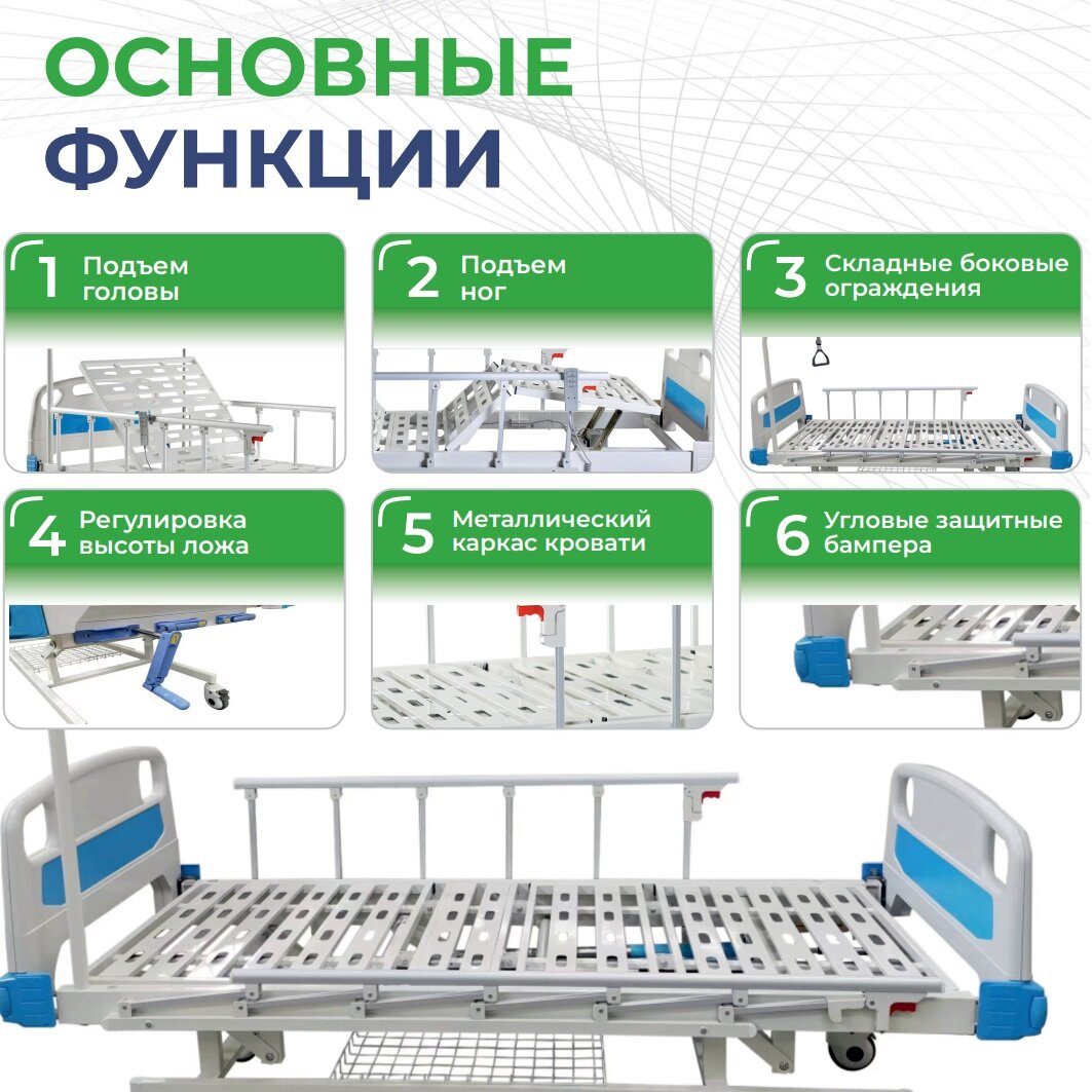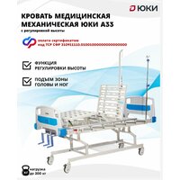Кровать медицинская механическая А-33 - 3-х функциональная кровать, предназначенная для использования в лечебных учреждениях для лечения, диагностики и ухода за пациентами под наблюдением врача, а также в домашних условиях - для профилактики, лечения и восстановления больных. Кровать отличается функцией регулировки высоты ложа, что удобно для пользователя и персонала.